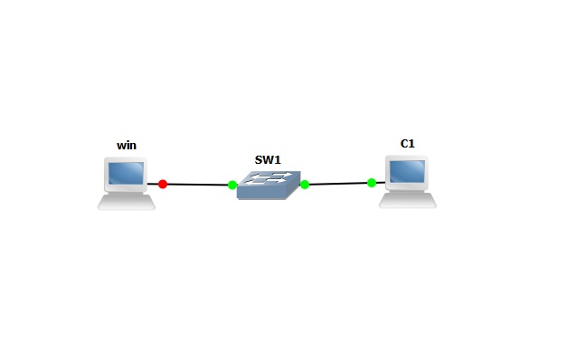 Добавим в схему Ethernet switch и Virtual PC (как это сделать описывалось в предыдущем уроке). Соберем схему показанную на рис. 4.