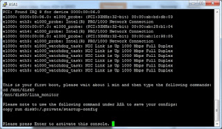 Свернем его и подключимся к ASA по консоли. Откроется еще одно окно, в котором будет отображаться процесс загрузки устройства