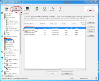 Для начала сконфигурируем интерфейсы IPS. Открываем ASDM и настраиваем: