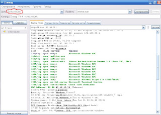 Откроем на виртуальной машине Zenmap и запустим сканирование хоста 192.168.20.1 (т.е. мой компьютер). Таким образом виртуальная машина с XP будет выступать в роли атакующего, а наш компьютер в роли атакуемого