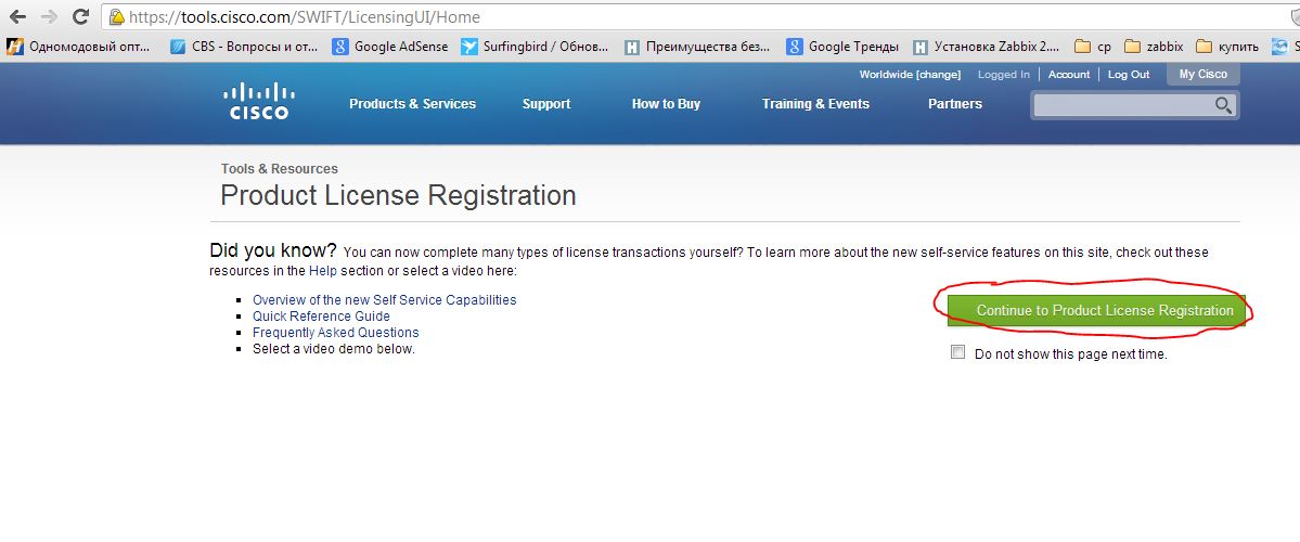 Нам нужен Product Authorization Key (тот самый PAK). Копируем его и открываем в браузере приведенный в документе адрес http://www.cisco.com/go/license. Откроется окно авторизации