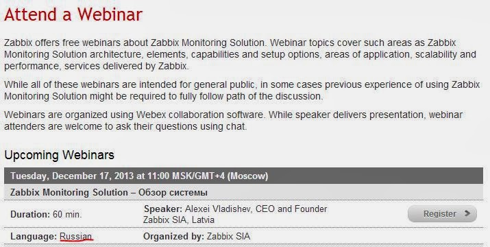 Завтра, 17 декабря состоятся сразу два вебинара Zabbix на РУССКОМ языке. Темы: "Zabbix Monitoring Solution – Обзор системы" и "Настройте Zabbix на максимальную производительность" Отличная новость.